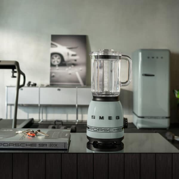 Appareil de cuisine au caractère affirmé : clair dans la forme, précis dans la fonction. Look des années 1950 propre aux produits Smeg et langage formel épuré signé Porsche : les accents en Noir mat sur le socle, le bouton de commande et les détails du bol mixeur ainsi que la bande Porsche caractéristique sur le corps donnent à ce mixer un réel attrait visuel.Quatre niveaux de vitesse manuels et trois programmes prédéfinis (« Smoothie », « Smoothie vert » et « Glace pilée ») garantissent des résultats fiables. La fonction de commande par impulsion à trois niveaux d’intensité assure un contrôle précis pour mixer pendant quelques secondes seulement. Le couvercle intégrant un gobelet doseur permet d’ajouter des ingrédients en toute sécurité et facilement pendant le mixage. La fonction de nettoyage automatique vient compléter un concept bien pensé à tous points de vue.