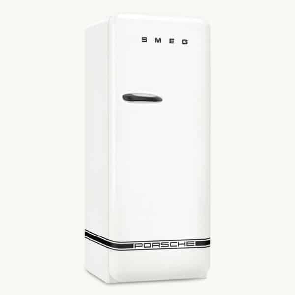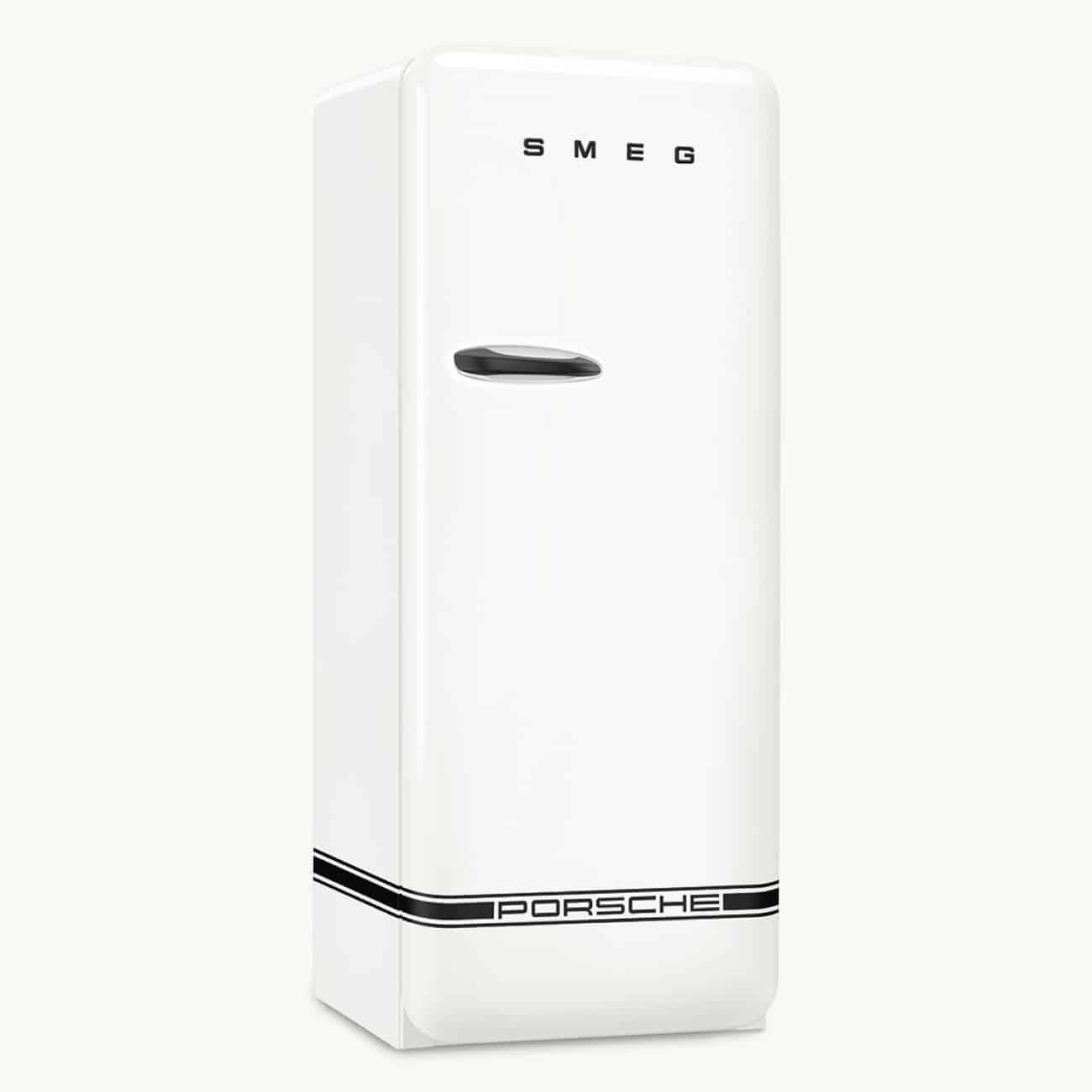 Le réfrigérateur emblématique Smeg FAB28 est personnalisé avec des éléments de design Porsche, tels que les bandes caractéristiques et les couleurs distinctives Carrara White et Shade Green, pour devenir un objet de style de vie qui séduira aussi bien les amateurs de design que les passionnés d’automobile.